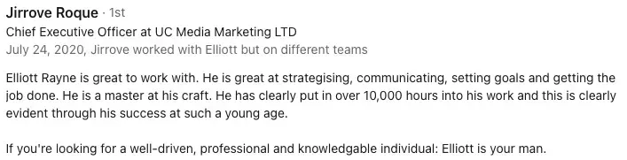 "Exclusive Bi-Weekly Strategy Deep-Dives with Founder Elliott Rayne" Elevate your business strategy with direct access to the mind behind our success. These aren't your average coaching sessions; they're a bi-weekly masterclass in growth, leveraging insights from the very secrets that have propelled numerous companies and two of Elliott Rayne’s own multi-million dollar ventures since his teenage years.